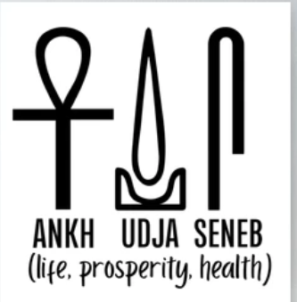 trois hiéroglyphes égyptiens "Ankh, oudedja et seneb" (𓋹𓍑𓋴 ˁnḫ wḏȝ